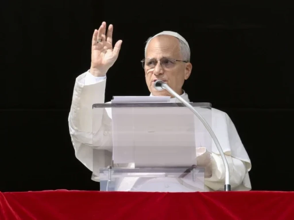 Pope Leo XIV waves to pilgrims gathered in St. Peter’s Square for his Sunday Angelus on Oct. 26, 2025, at the Vatican. © Vatican Media